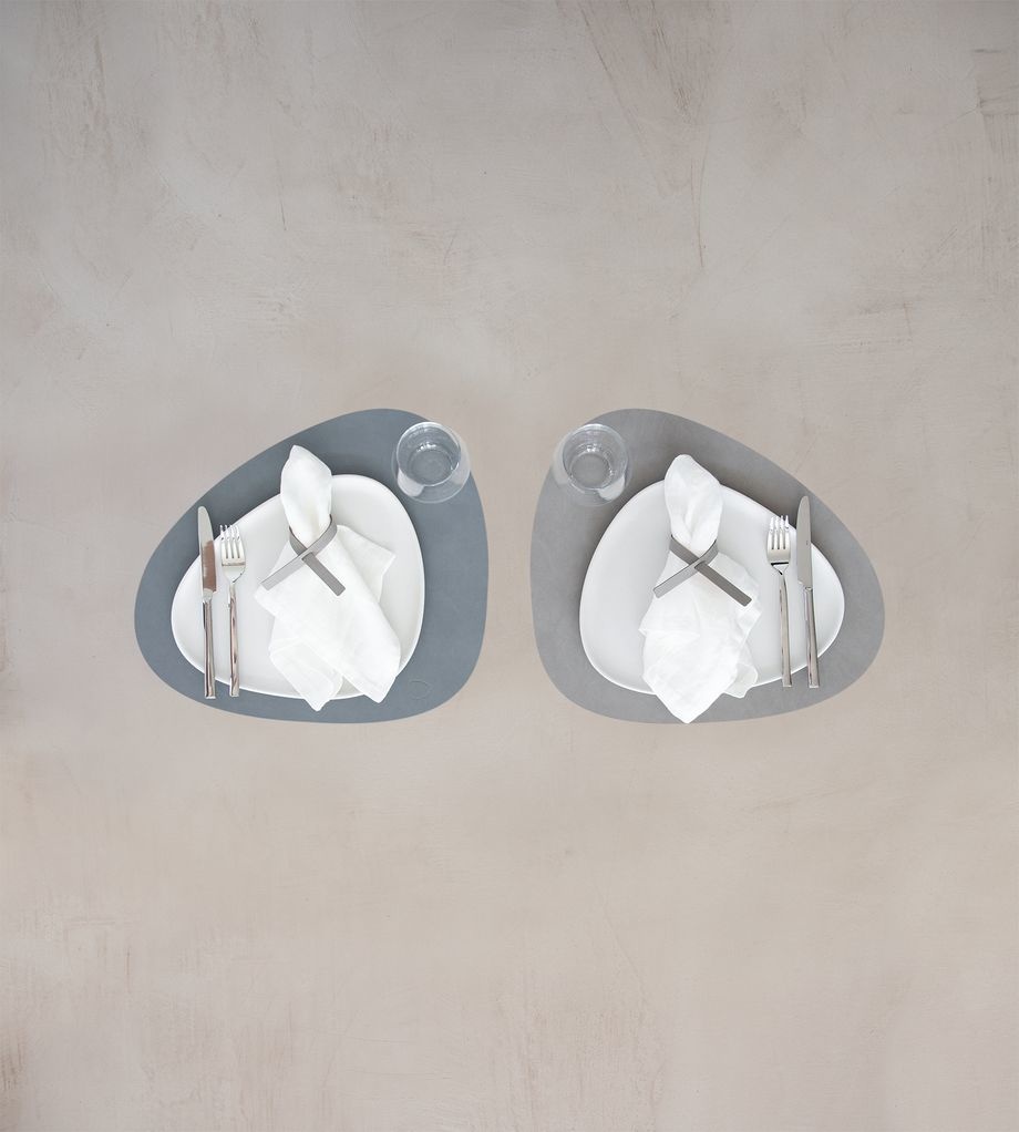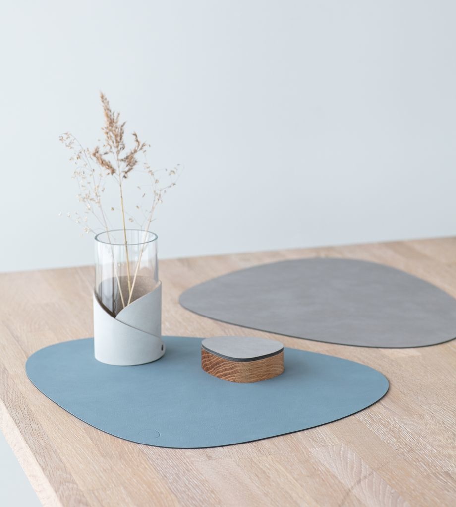 LIND DNA set of 2 Curve Placemats Double-sided Leather - NUPO Light Blue and NUPO Light Gray