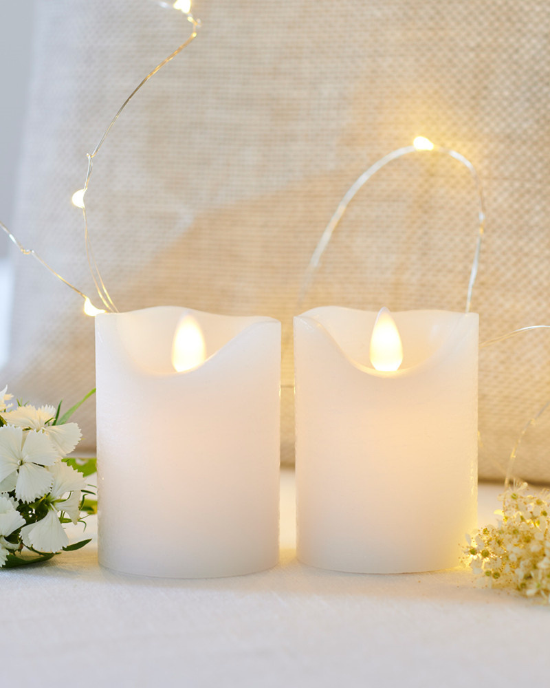 Create a warm and romantic ambiance with Sara, the stylish LED mini pillar candle. This candle has a rustic wax look and an antique design, making it indistinguishable from the real thing. Thanks to the dynamic flickering light, you can enjoy an authentic glow and beautiful shadow play in your interior.